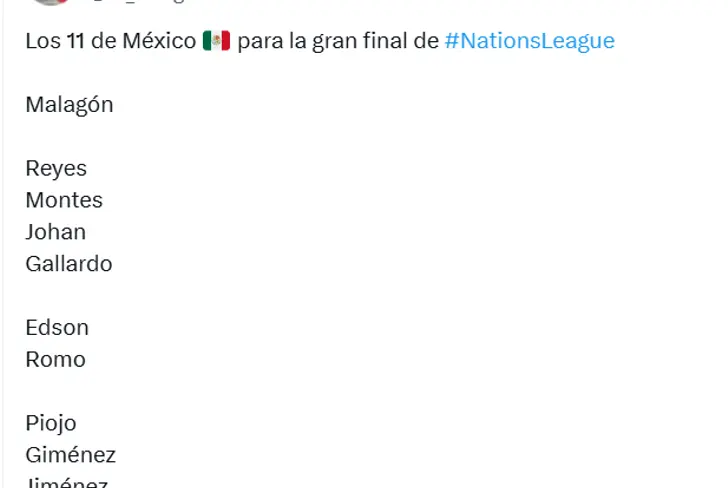 De acuerdo con información de Juan Carlos Zúñiga de Caliente, Erik Lira iría a la banca para sorpresa de absolutamente todos. La entrada de César Montes en la central haría que Edson Álvarez vaya de mediocampista y le quite el puesto al "Pitbull".