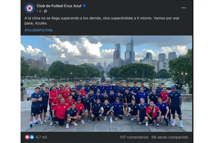 “A la cima no se llega superando a los demás, sino superándote a ti mismo. Vamos por ese pase, azules”, fue el comentario que pusieron en redes sociales junto con una fotografía en las míticas gradas de la película de Rocky Balboa, en donde Sylvester Stallone ascendía cada vez que buscaba ganar una de sus peleas. Ahora el grupo de Cruz Azul quiere dar su mejor esfuerzo en la Leagues Cup.