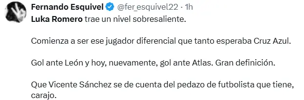 Luka Romero ha irrumpido en Cruz Azul con una fuerza arrolladora, conquistando el corazón de la afición celeste en la reciente gira por Estados Unidos. Su desempeño en los dos partidos amistosos fue simplemente espectacular: goles, asistencias, jugadas de fantasía... Romero se convirtió en el faro de esperanza para un Cruz Azul que necesitaba desesperadamente un revulsivo. Su talento y su desparpajo han dejado en evidencia la cuestionable decisión de Vicente Sánchez, quien inexplicablemente lo relegó al banquillo unas semanas atrás.