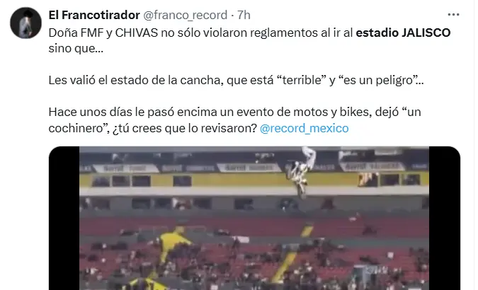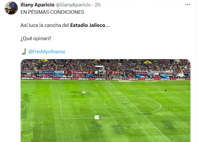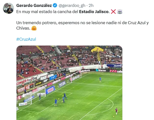 El estado del césped del Estadio Jalisco fue otro factor que generó preocupación en Cruz Azul. El terreno de juego presentaba irregularidades y zonas con poco pasto, lo que dificultaba el desarrollo del juego y aumentaba el riesgo de lesiones.