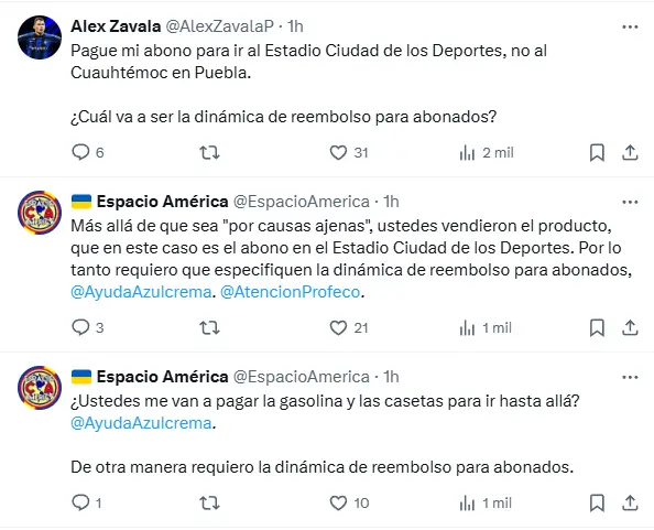 En la publicación de redes sociales que hizo el club azulcrema anunciando el precio de los boletos para el choque que se llevará a cabo en la capital poblana, un buen número de seguidores mostraron su inconformidad ya que les están incumpliendo un servicio que ellos ya habían contratado y que además los dejará sin poder ver al equipo, ya que le representaría un costo extra la movilidad tanto en gasolinas como en las cuotas de la autopista.