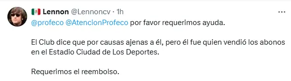 Aunque el América ha anunciado que tendrán una mecánica de reembolso para aquellos que ya tenían su ticket para entrar al estadio Ciudad de los Deportes que fue clausurado el fin de semana, hay aficionados quienes no están conformes e incluso podrían levantar una queja ante Profeco, lo que representaría un nuevo dolor de cabeza para el club.