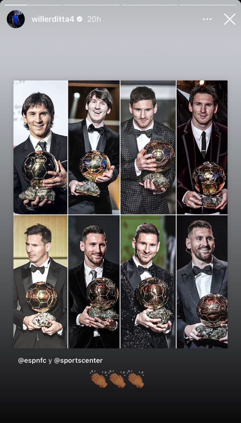 Durante la gala del Balón de Oro, mucho futbolistas de todas partes expresaron su sentir con lo que ocurrió y también mostraron el apoyo a sus amigos, conocidos o futbolistas favoritos, en este caso Ditta mandó un claro mensaje a través de redes sociales para expresar de quién es fan, colocando la imagen de una televisión viendo la Gala y aplaudiendo el hecho logrado e histórico para Lionel Messi.