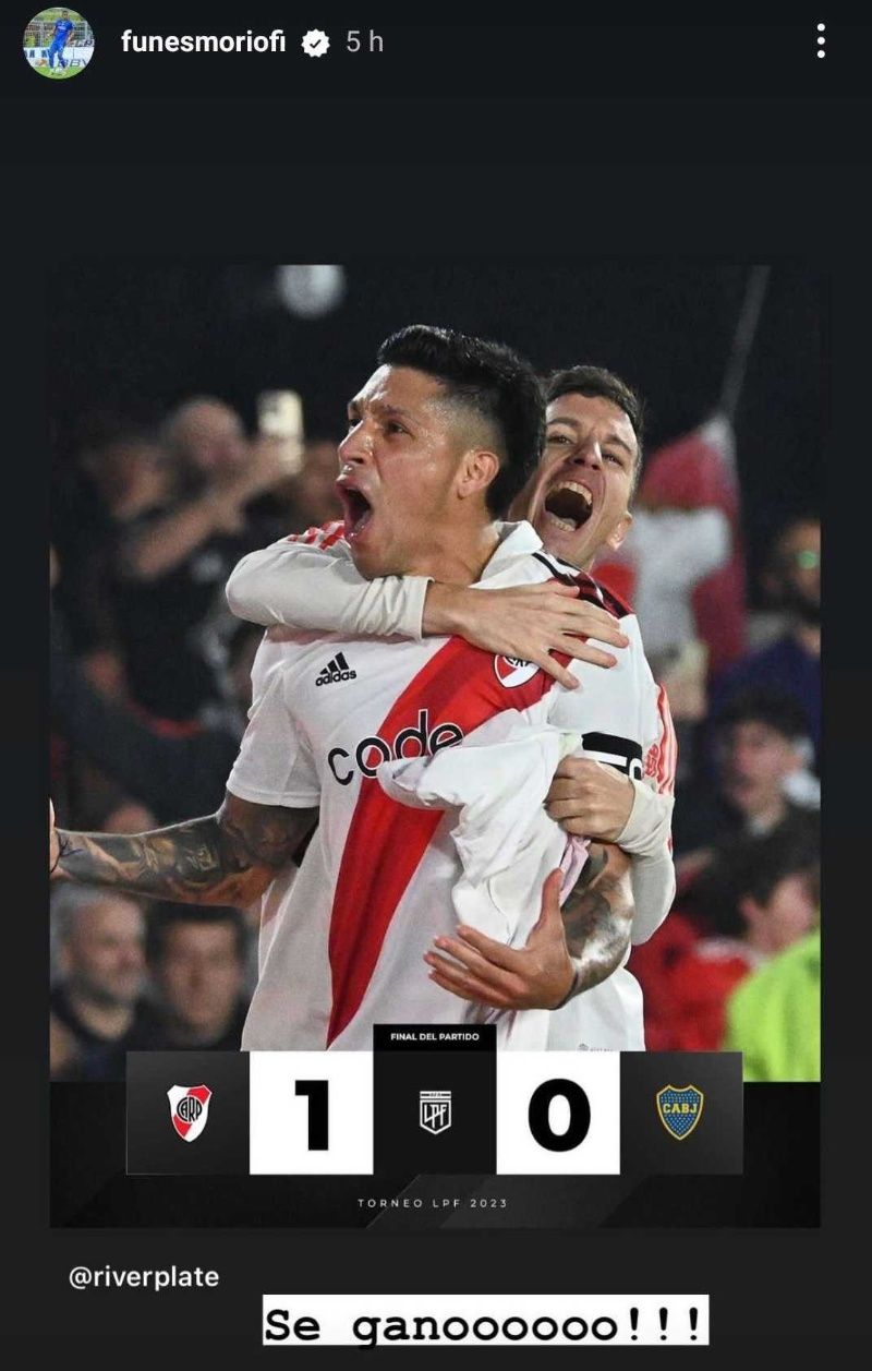 Juan Escobar subió una historia a su cuenta de Instagram en donde pedía disculpas por la eliminación de La Máquina Celeste y contrario a él, Ramiro Funes Mori subió otra en donde festejaba el triunfo de River Plate sobre Boca Juniors en el clásico de Argentina.