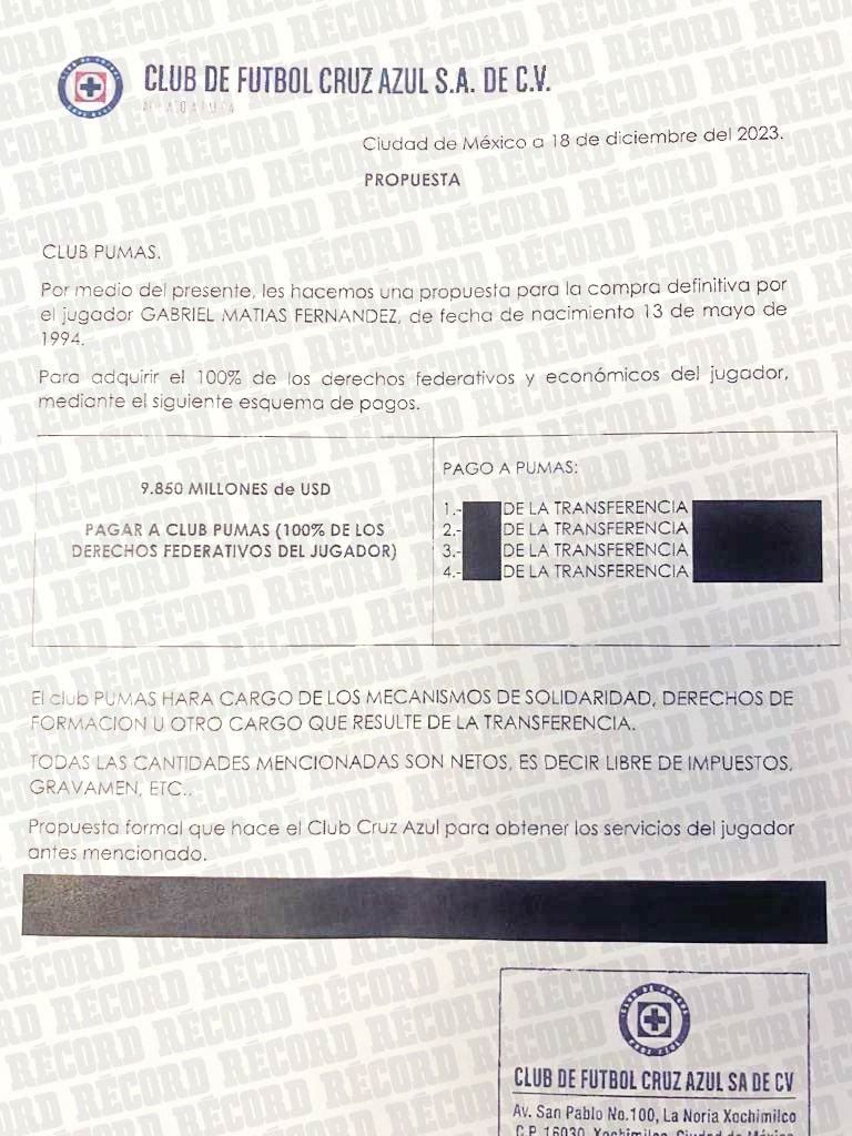 Aquí debajo de este párrafo podrás ver lo que es el supuesto contrato con Pumas, donde se estipulan varias cosas, sobre todo los pagos que se harán al club Universidad por el jugador Toro Fernández, quien ya inclusive presentó sus primeros entrenamientos con el conjunto de Cruz Azul, pues ya está al mando de Martín Anselmi, y ya se preparan para lo que será el siguiente torneo, aunque el ambiente sobre Cruz Azul, parece que lo quieren desestabilizar.