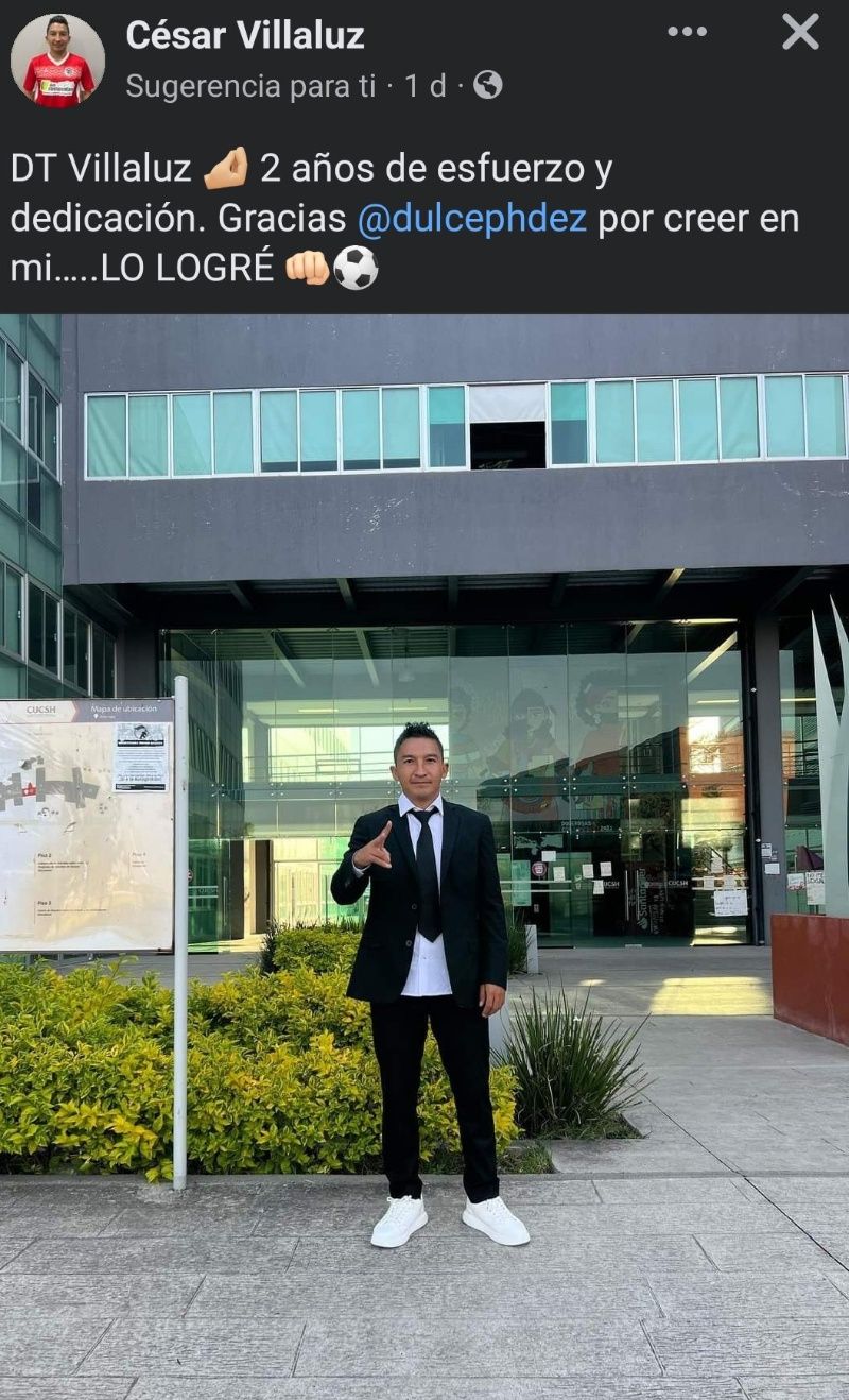 Nos referimos a César Villaluz quien recientemente subió a su cuenta de Facebook que terminó su proceso como entrenador y ahora ya puede decir que es Director Técnico tras su breve paso por el Deportivo Aragón y los Industriales de Naucalpan de la Liga de Balompie.